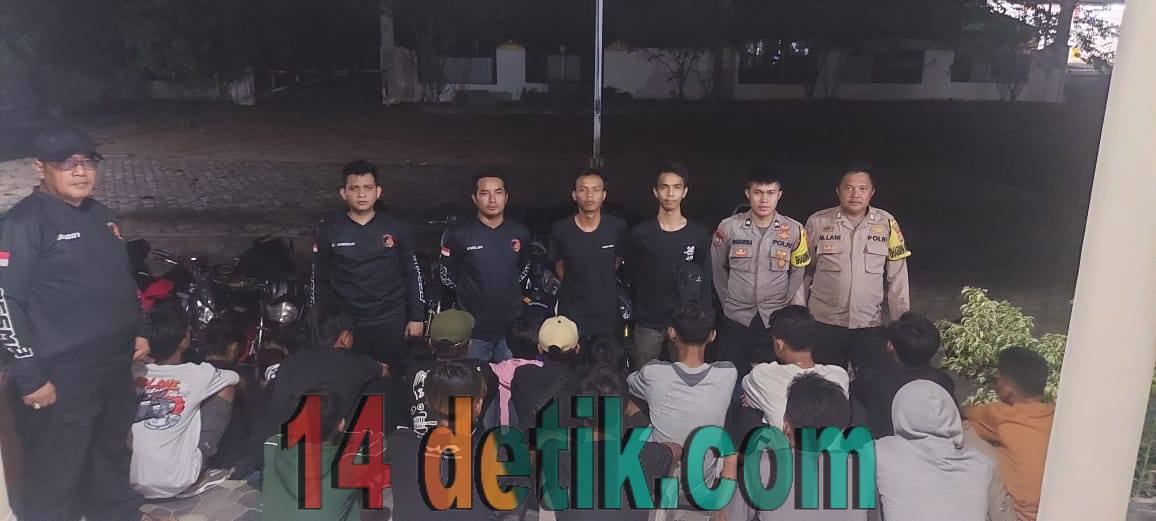 //14Detik.Com//Mesuji(Lampung)Polres Mesuji – Unit Reskrim Polsek Tanjung Raya Polres Mesuji Polda Lampung di Pimpin Kanit Reskrim, melaksanakan Patroli Dialogis di seputar Tugu Macan Desa Brabasan Kecamatan Tanjung Raya dan berhasil menjaring puluhan Remaja yang sedang melakukan balap liar. Sabtu (02/12/23) Malam.