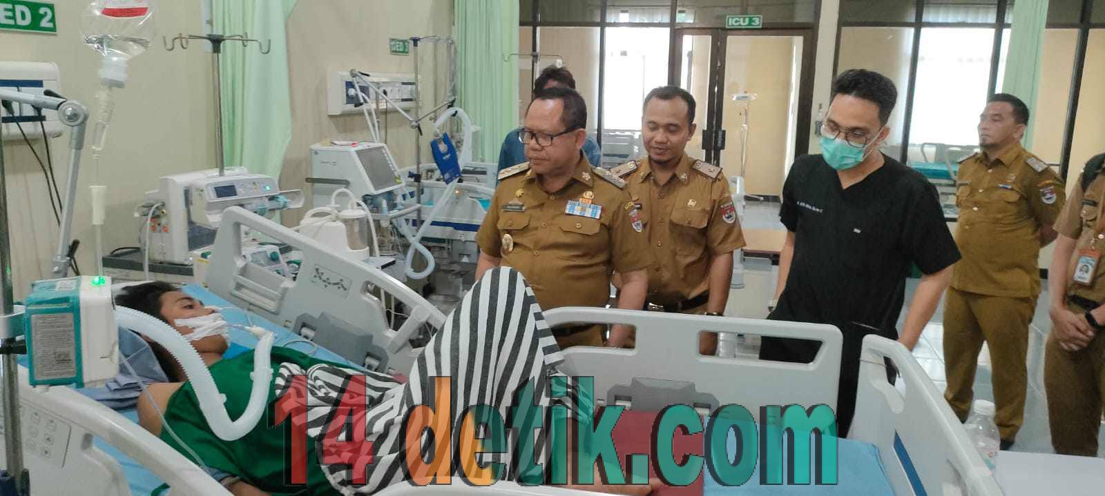 Penjabat Bupati Mesuji Drs.Sulpakar, MM di dampingi Plt.Kadis Kesehatan Kabupaten Mesuji Kusnandar dan Kabid PIKP Dinas Kominfo Kabupaten Mesuji Hendra Kurniawan, Menjenguk Korban di rumah sakit RBC, Selasa ( 02/1/2024 )