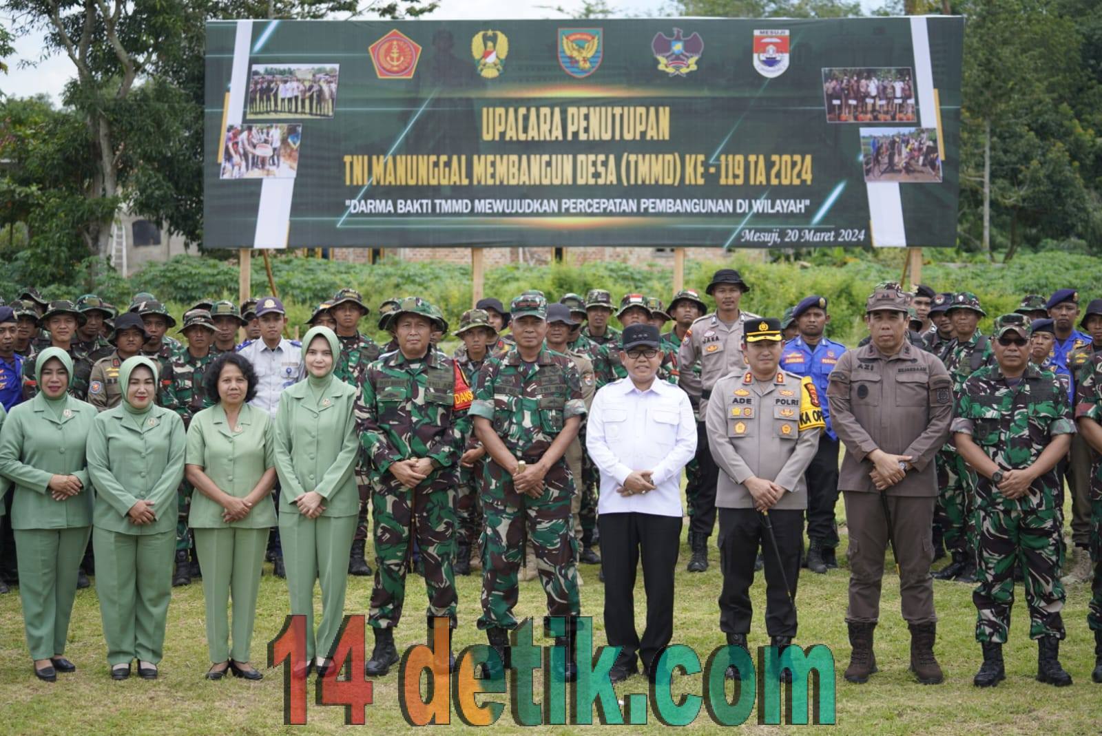 – Keberhasilan ini merupakan cermin suatu sikap dan keinginan yang besar dari kita semua untuk senantiasa ingin memberikan dan berbuat yang terbaik dalam membantu mengatasi kesulitan masyarakat dalam segala segi kehidupan oleh karena itu pengendali kegiatan operasional dalam kurung PKO tmmd saya menyampaikan terima kasih dan apresiasi yang setinggi-tingginya kepada Bupati serta kabupaten, kepolisian instansi kementerian terkait dan khususnya kepada seluruh masyarakat yang telah bahu-membahu bersama prajurit TNI mewujudkan pembangunan daerah yang menjadi sasaran pelaksanaan pmmd ke-119 tahun 2024 ini.