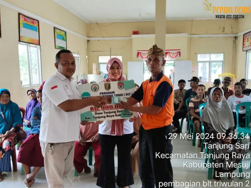 Pemerintah Desa Tanjung Sari, Kecamatan Tanjung Raya, Kabupaten Mesuji, Salurkan Bantuan Langsung Tunai Dana Desa ( BLT DD) Tahap kedua tahun 2024, kepada 35 Keluarga Penerima Manfaat (KPM) Senin, (10/6/2024).