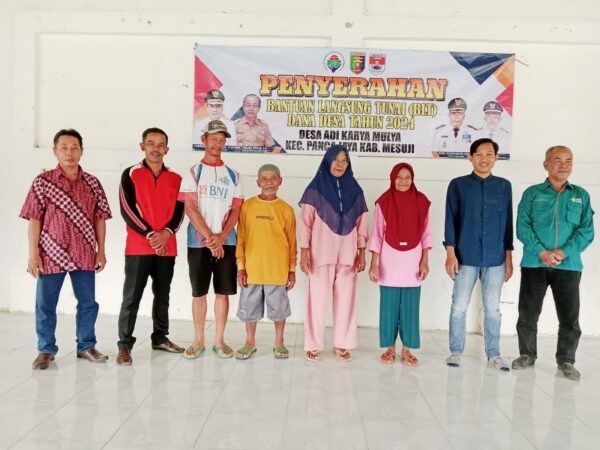 pemerintah Desa Adi Karya Mulya Bagikan (BLT DD) Langsung Tunai Tahun Anggaran 2024. Di Aula Balai Desa Adi karya mulya