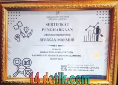 pemerintah desa berasan makmur kembali menerima seterfikat penghargaan sebagai binaan desa cinta statistik Uncategorized